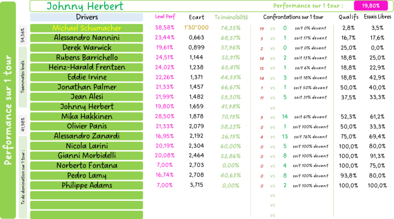 En Mode Qualif (soit Le meilleur tour du weekend de grand prix de formule 1), Herbert c’est :